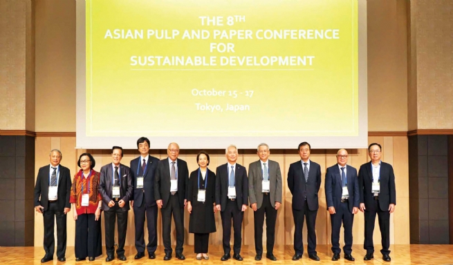 Ông Hoàng Trung Sơn (thứ hai từ phải qua) cùng chủ tịch hiệp hội giấy các nước tại Hội nghị Công nghiệp Bột giấy và Giấy châu Á lần thứ 8 (APPIC 2025)