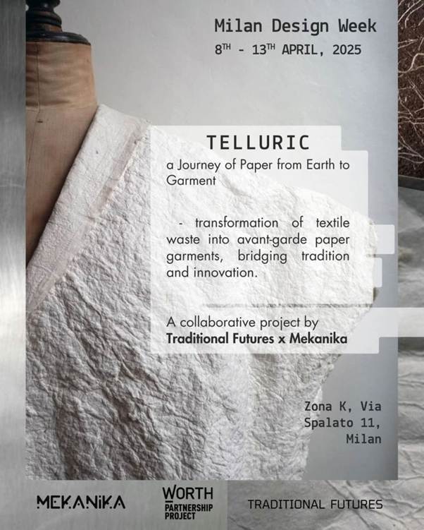 Mekanika hợp tác với một nhà thiết kế thời trang để cho ra đời bộ sưu tập quần áo bằng giấy, được sản xuất hoàn toàn từ sợi vải tái chế - Ảnh: traditionalfutures.org
