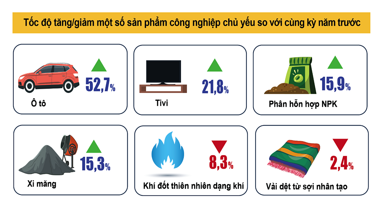 Tốc độ tăng/giảm một số sản phẩm công nghiệp chủ yếu. |