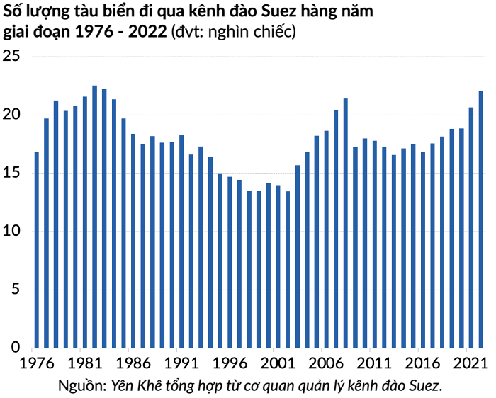Theo cơ quan quản lý kênh đào Suez, vào năm 2019, tuyến đường biển này trung chuyển tổng cộng 1,03 tỷ tấn hàng hoá - cao gấp 4 lần so với kênh đào Panama.
