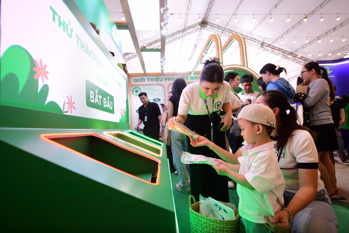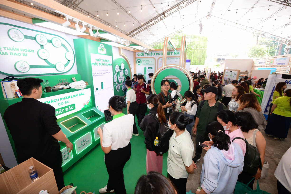 Điểm nhấn chủ đề tại ngày hội chính là không gian trải nghiệm của Liên minh Tái chế Bao bì Việt Nam (PRO Việt Nam). Không dừng lại ở các hoạt động hoạt náo, không gian của PRO Việt Nam đóng vai trò như một lớp học thực tế về kiến thức tiêu dùng xanh và phân loại rác tại nguồn.